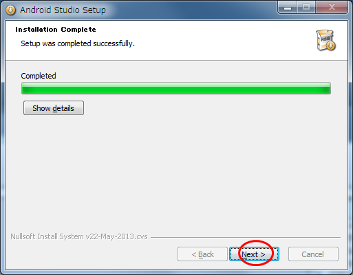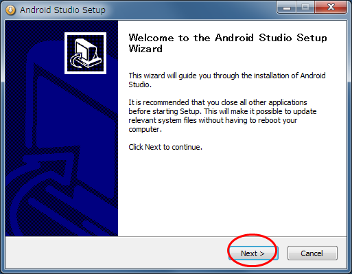 Download Android Studio v0.1.x for Windowsってボタンをクリック